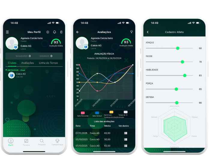 Seja visto por quem pode fazer a diferença na sua carreira, na Calcio, você mesmo cria suas oportunidades.